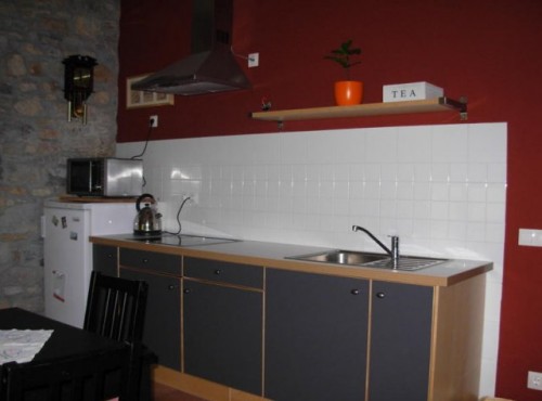 Está hecha con piedra de la zona y aneja a la vivienda de los propietarios. En ella se construyeron dos apartamentos de 70 m2 cada uno. En el piso superior está el apartamento TRISQUEL. Tiene capacidad para cuatro personas, con dos dormitorios, uno de ellos con cama de matrimonio y el otro con dos camas. Dispone de baño con ducha y cocina-comedor.